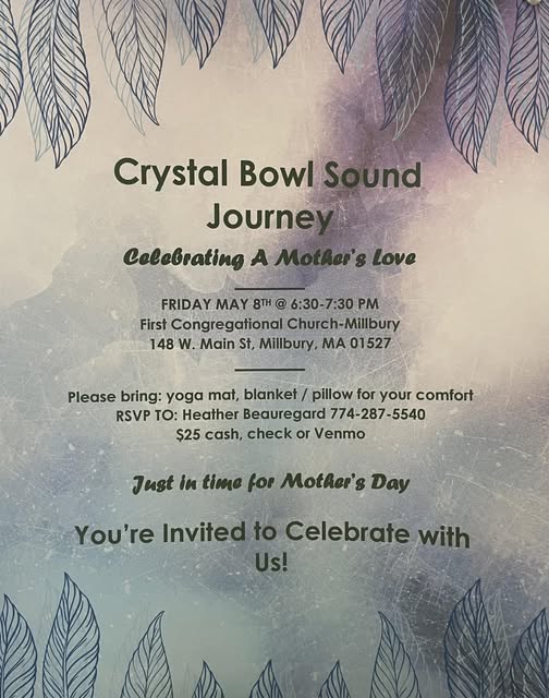If you plan to attend please reserve a space by calling Heather at 774-287-5540.   The cost is $25.00 per person.  You should bring a yoga mat, pillow, and blanket for your comfort if you plan to lie on the floor, or you may participate seated.